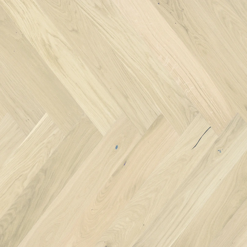 În tendințele actuale de design interior, care favorizează materialele naturale și culorile deschise, acest parchet Herringbone reprezintă o alegere inspirată. Modelul clasic de montaj în spic (Herringbone) este reinterpretat într-o cheie contemporană prin nuanța deschisă Bianco și prin microteșitura pe toate cele patru laturi ale fiecărei plăci. Acest detaliu de design accentuează conturul individual al plăcilor, adăugând profunzime vizuală și o dinamică subtilă întregii suprafețe.