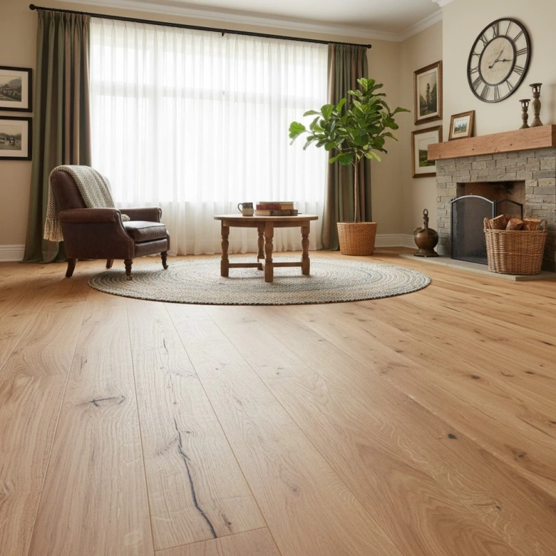 - Întreținerea preventivă: Aplicați primul strat de ulei de întreținere după 2-3 săptămâni de la montaj pentru a proteja suprafața și a uniformiza aspectul. Protejați zonele de trafic intens cu preșuri și utilizați protecții de войlок sub picioarele mobilierului pentru a preveni zgârieturile. Mențineți umiditatea relativă între 45-65% și temperatura între 18-22°C pentru a preveni fisurile și deformările lemnului natural.